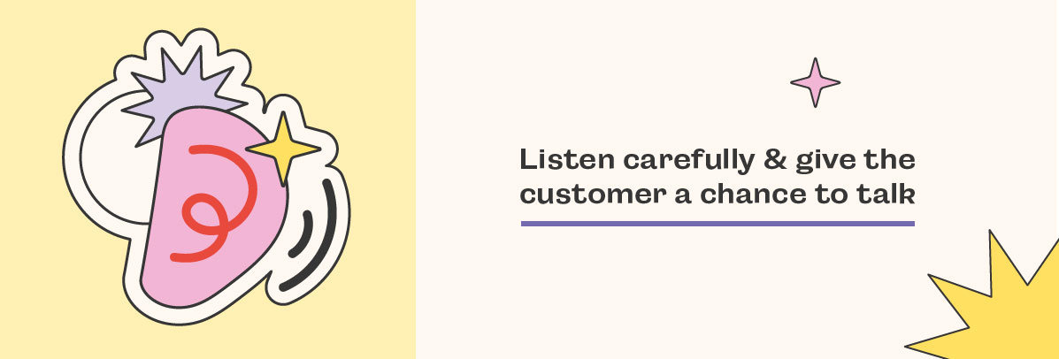 Listen respectfully. Don’t argue or interrupt. Give the customer a chance to talk. Angry customers often calm down when they feel they’ve been listened to and taken seriously.